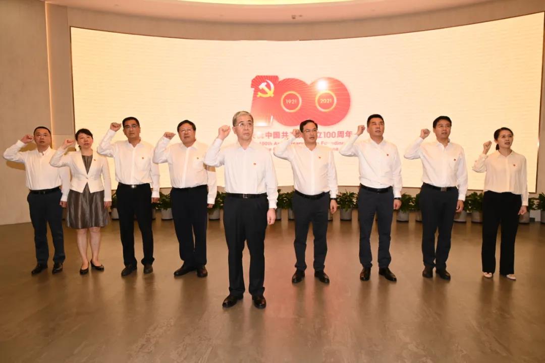 在參觀過程中,中國船舶集團黨組成員認(rèn)真聆聽講解,不時詢問歷史細節(jié),深入交流學(xué)習(xí)心得。在一大紀(jì)念館宣誓大廳,黨組成員面對黨旗,在雷凡培的領(lǐng)誓下,重溫入黨誓詞,用錚錚誓言同黨的創(chuàng)建者進行了一次穿越時空的對話。從黨的一大到十九大,一代代中國共產(chǎn)黨人接續(xù)奮斗,一步步朝著實現(xiàn)中華民族偉大復(fù)興的宏偉目標(biāo)前進。