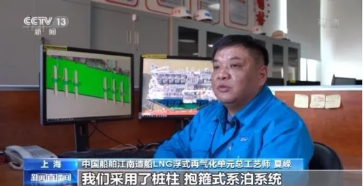 中國船舶集團旗下江南造船LNG浮式再氣化單元總工藝師 夏嶸:與常規(guī)船舶采用纜繩系泊不同,我們采用了樁柱—抱箍式系泊系統(tǒng)。該套系統(tǒng)能夠滿足FRU在部署地營運期間永久性碼頭系泊的需要。